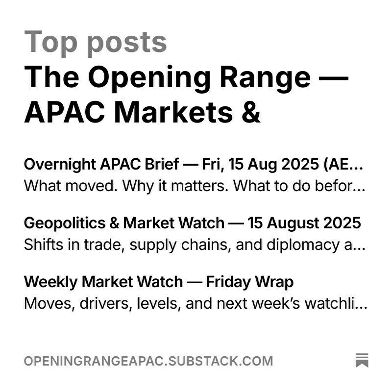 Just launched my new Substack: The Opening Range – APAC Markets & Geopolitics.